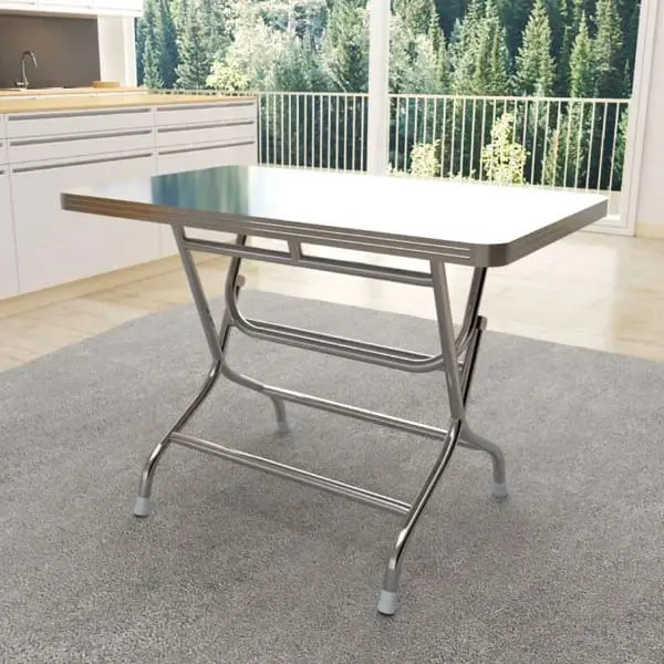 Bên cạnh đó, mẫu bàn này đi theo phong cách thiết kế đơn giản nhưng lại đảm bảo sự chắc chắn khi sử dụng. Phần mặt bàn được gia công tỉ mỉ, trơn mịn. Riêng phần khung có thể thu gọn lại sau khi sử dụng, thuận tiện cho việc dọn dẹp hàng quán. Nếu sử dụng trong gia đình cũng không chiếm nhiều diện tích.